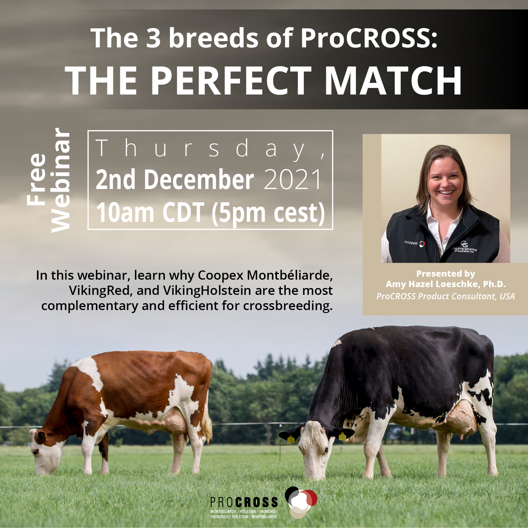 Join us for a discussion on choosing bulls for ProCROSS and how to easily implement and maintain ProCROSS within your herd. We will examine the multi-trait selection indexes used by Montbeliarde, VikingRed and VikingHolstein and decode the bulls’ proofs for some key traits.